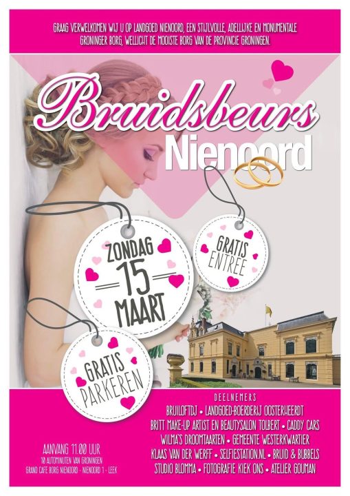 Een aantal keer per jaar kun je ons vinden op een bruidsbeurs in Noord Nederland. In de maand maart van 2025 kon je ons bijvoorbeeld vinden bij de inspirerende Bruidsbeurs Nienoord in Leek en bij de net zo prachtige en interessante Bruidsbeurs bij Het Gerecht in Heerenveen. Hieronder vind je enkele sfeerfoto's en hoogtepunten van de nieuwste trouwjurken en andere smaakvolle trendy accessoires van de bruidsmode.